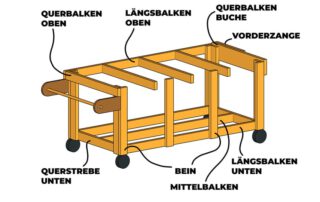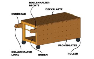 Und das wichtigste an dieser Werkbank ist, das man sie ganz individuell gestalten kann. Man kann die Maße verändern und man kann natürlich auch die Vorderzange und das Lochraster weglassen und nur den Rollenhalter anbauen, wenn man keine Lust hat die Leimflecken ständig wegzukratzen.