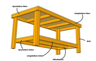 Oder du möchtest sie mobil haben? Dann schraub einfach ein paar Rollen drunter und schon kannst du deine Werkbank ganz entspannt durch deine Werkstatt schieben. Natürlich muss du dafür von der Beinlänge die Höhe deiner Rollen abziehen.