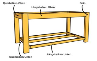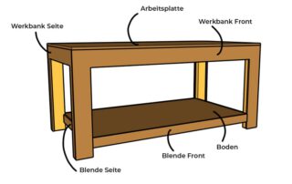 Auch diese Werkbank kannst du ganz individuell gestalten. Die Zeichnung dient als kreativer Anstoß. Du kannst sie frei nach deinen Wünschen ändern und erweitern. Den Möglichkeiten sind keine Grenzen gesetzt.